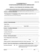 | 23:42, 13 April 2018 | Peer Review Request.pdf (file) | 86 KB | MEDICAL STAFF PEER REVIEW REFERRAL FORM This form is to be used for determining whether or not this occurrence needs to be peer reviewed. These detenninations are made by the YKHC Medical Staff QI Committee Chair&/ or the YKHC Clinical Director | 2 | |